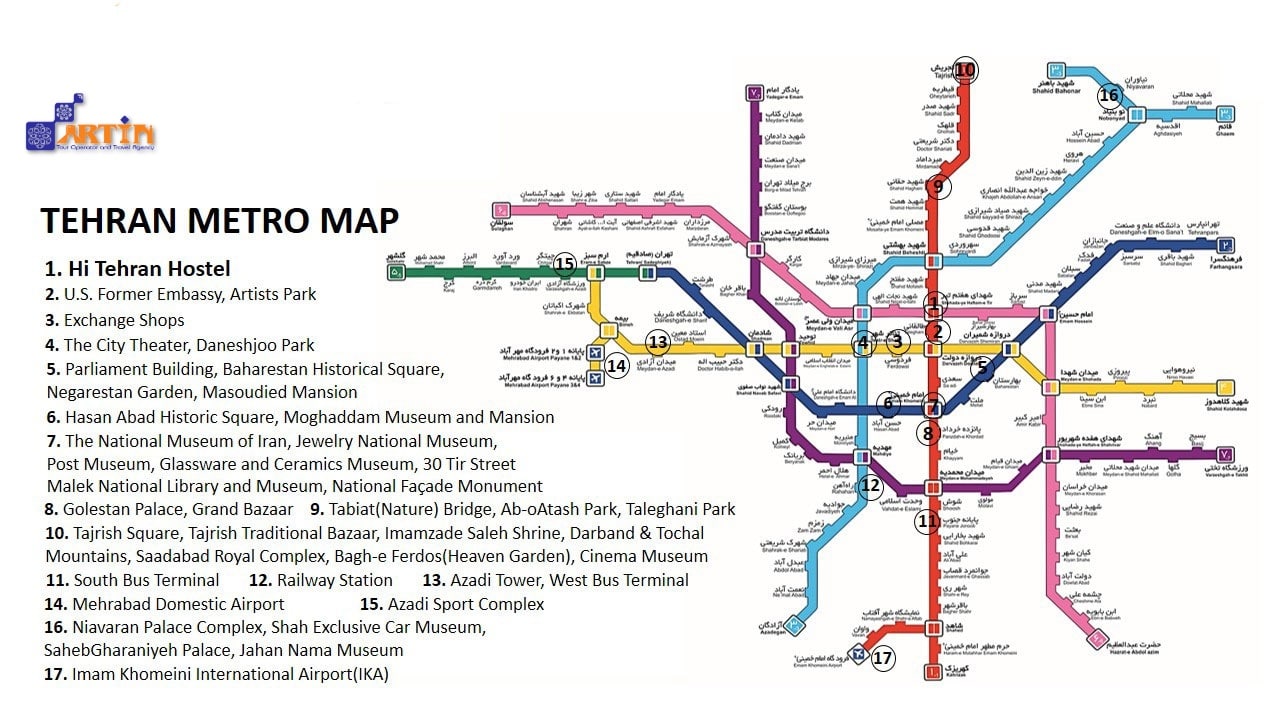 If your flight lands at the IKA airport at Tehran and you have no problem finding your way around in the subway, Iran travel tips to you is to take the subway. The subway station near the airport very convenient for tourists. This subway station is located on the Line 1 (the red one) of Tehran subway route, and easily connects every traveler to the heart of the city. Note that this subway line’s working hours start from 6:10 in the morning, and the last train moves at 7:15 pm. You can find the Tehran subway map here, to help you decide easier as a part of Iran travel advice.